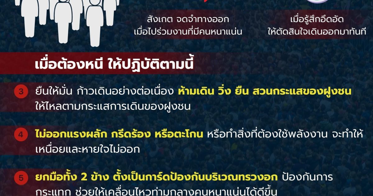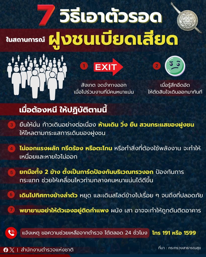 สำนักงานตำรวจแห่งชาติห่วงใยพี่น้องประชาชน ขอแนะนำ 7 วิธีเอาตัวรอด เมื่ออยู่ในสถานการณ์ฝูงชนแออัดเบียดเสียด จำไว้ประยุกต์ใช้เพื่อความปลอดภัย
