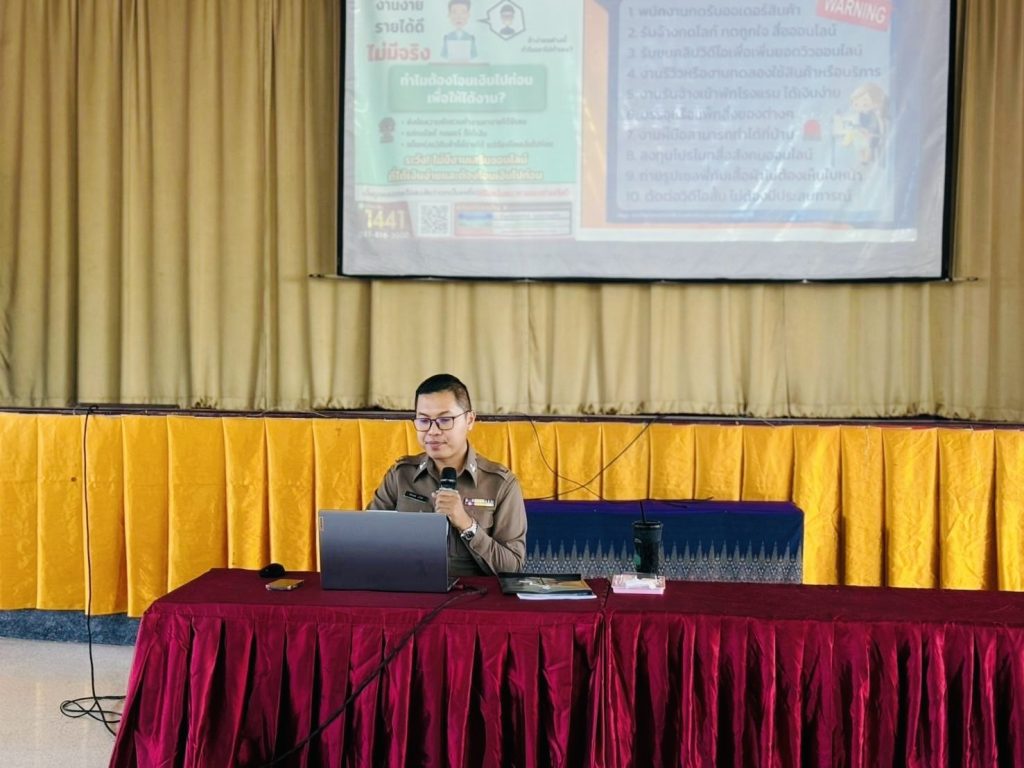 บรรยาย โครงการพัฒนาและเพิ่มสามารถในการรู้เท่าทันสื่อของผู้ปกครอง เด็กและเยาวชน ณ หอประชุมโรงเรียนบ้านคลองปลาหมอ เทศบาลศาลาลาย 14 มีนาคม 2025 โดย admin / ประชาสัมพันธ์,ผลการปฏิบัติงานสอบสวน,ผลการปฏิบัติงานสอบสวน,มีนาคม 2568 เมื่อวันนี้ (14 ม.ค.2568) เวลา 09.00 น. พ.ต.อ.ชัยยะ หนูคุ้มทรัพย์ ผกก.สภ.ชนแดน มอบให้ จ.ส.ต.นัทพงษ์ แก้วดี ผบ.หมู่(ป.) สภ.ชนแดน เป็นวิทยากรบรรยาย โครงการพัฒนาและเพิ่มสามารถในการรู้เท่าทันสื่อของผู้ปกครอง เด็กและเยาวชน ณ หอประชุมโรงเรียนบ้านคลองปลาหมอ เทศบาลศาลาลาย อ.ชนแดน จว.เพชรบูรณ์