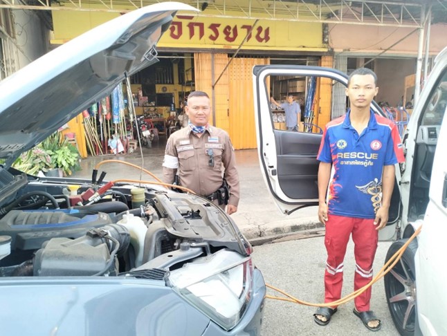 ช่วยเหลือรถยนต์แบตเตอรี่หมด โดยการพ่วงแบตเตอรี่ จนสามารถเดินทางกลับบ้านได้อย่างปลอดภัย