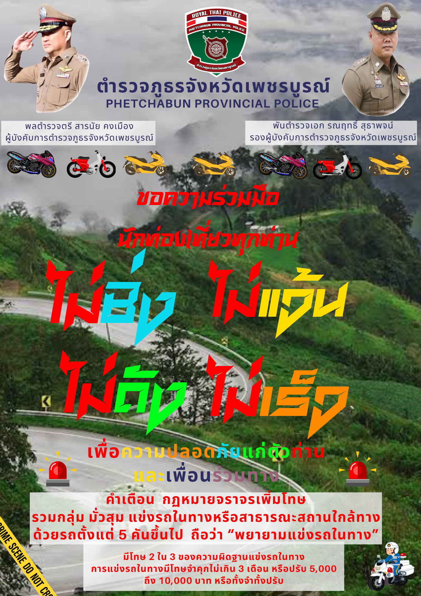 ประชาสัมพันธ์ ขอความร่วมมือนักท่องเที่ยวทุกท่าน ไม่ซิ่ง ไม่แว้น ไม่ดัง ไม่เร็ว