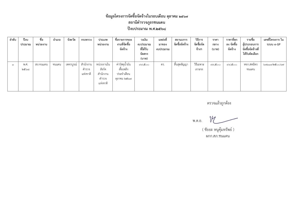 สรุปผลการดำเนินการจัดซื้อจัดจ้าง เดือน ตุลาคม 2567