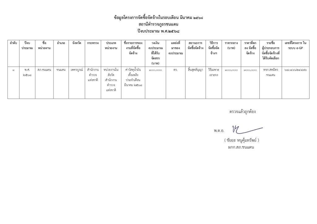 สรุปผลการดำเนินการจัดซื้อจัดจ้าง เดือน มีนาคม 2568